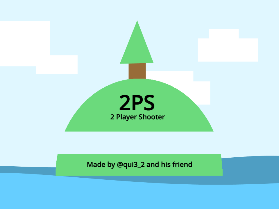 2PS is a short 2 Player Shooter that contains 3 different maps and 4 different guns. This game is still kind of in development and might recieve updates. Have fun and remember, always choose the RPG 1v1 because it's the easiest! Or you can also choose the sniper but same thing.